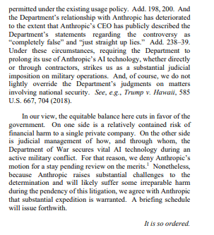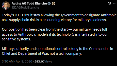 The U.S. Court of Appeals for the District of Columbia Circuit has rejected Anthropic’s emergency request to pause the Pentagon’s designation of its technology as a national security supply chain risk. The three-judge panel ruled that government interests in controlling the use of AI during active military conflict outweighed potential financial and reputational harm to the company.
