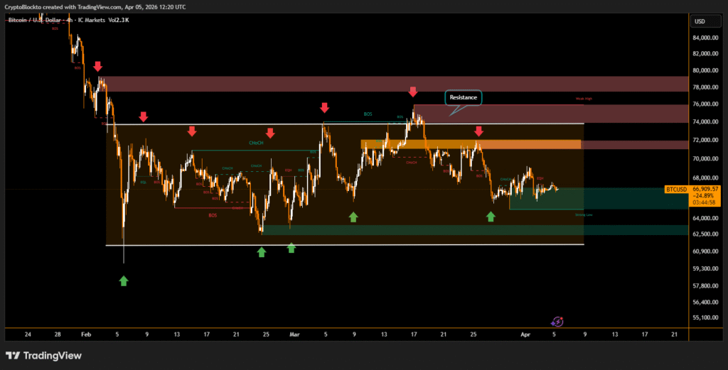 Institutional demand appears to be holding the market floor. Approximately 50,000 BTC were absorbed by ETFs in March, the fastest monthly pace since October 2025. Additional accumulation included 44,000 BTC purchases, while approval of a 14-basis-point bitcoin ETF opened access to 16,000 advisors managing $6.2 trillion in assets.