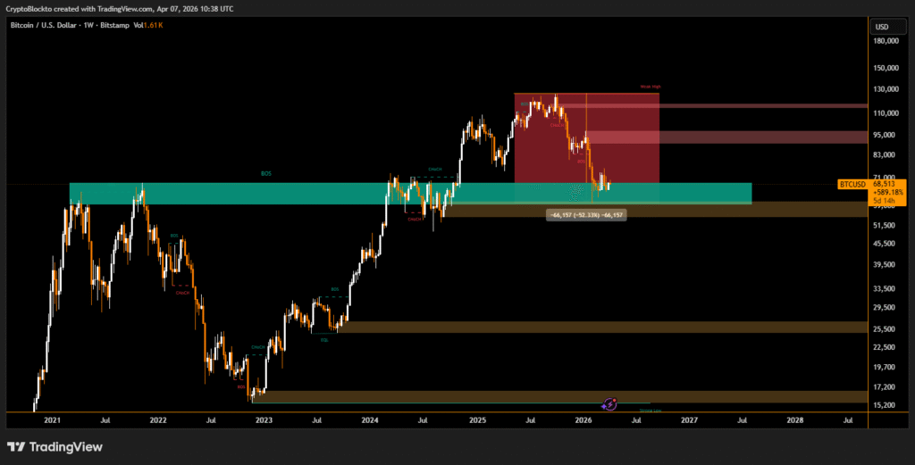High timeframe close above $76,000 could push Bitcoin toward $86,000–$90,000, while rejection at that level could send prices below $60,000. Many traders are also watching long term indicators such as the 200-week moving average, historically linked to bear market bottoms.
