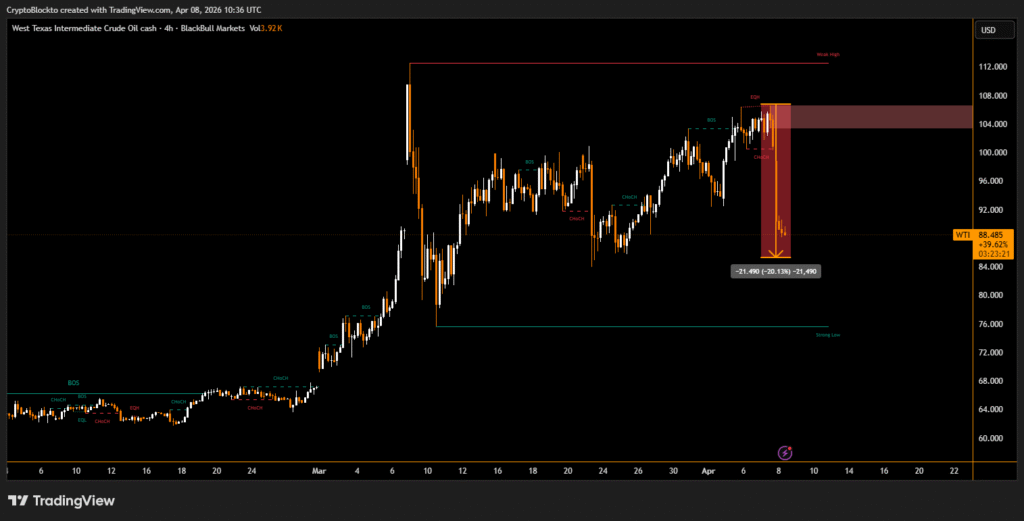 Oil prices dropped sharply after the ceasefire announcement. Crude, which had surged between $110 and $118 per barrel, fell by nearly 16% to around $92, while WTI crude declined to $91 before stabilizing near $95.