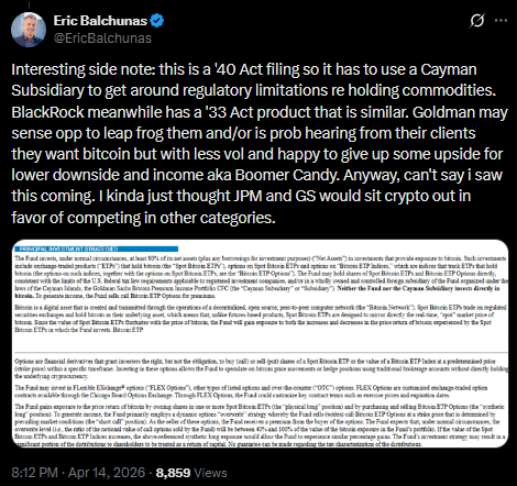 Goldman Sachs Files for Bitcoin Premium Income ETF to Expand Crypto Investment Strategy