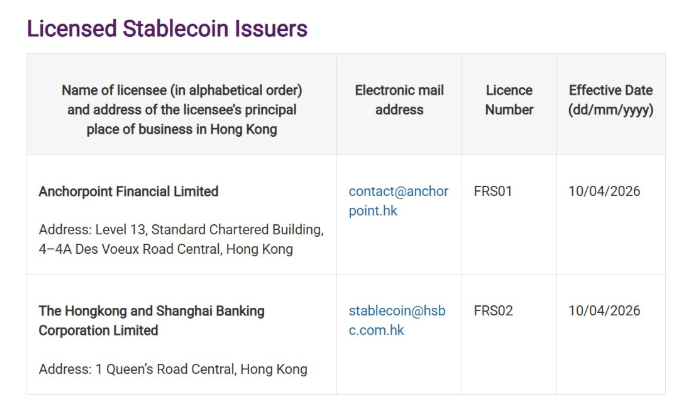 Hong Kong has officially granted its first stablecoin issuer licences under a new regulatory regime overseen by the Hong Kong Monetary Authority. The initial approvals were awarded to Anchorpoint Financial and The Hongkong and Shanghai Banking Corporation Limited, marking a key milestone in the region’s digital asset oversight strategy.