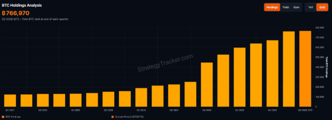 The firm’s most recent purchase occurred on April 6, when it acquired 4,871 BTC for more than $329.8 million, bringing total holdings to approximately 766,970 BTC, valued at about $54.5 billion at current market prices.