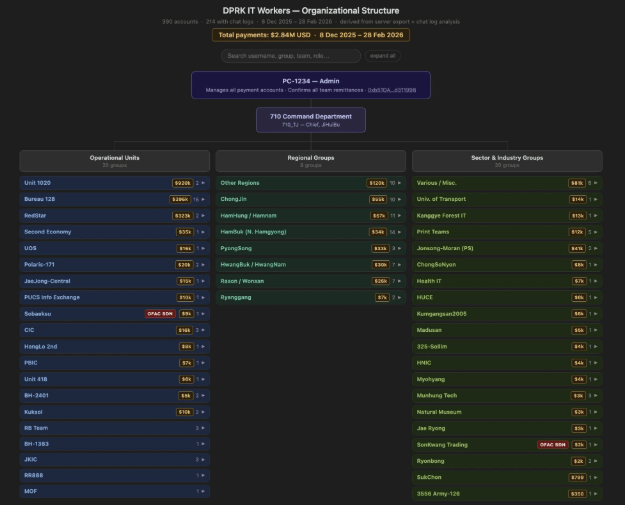 Payment coordination reportedly took place through a website known as luckyguys.site, where members used a shared and easily guessed password, “123456,” to access accounts. Some individuals using the platform were linked to entities believed to be associated with Sobaeksu, Saenal, and Songkwang, organizations previously sanctioned by the United States Office of Foreign Assets Control.
