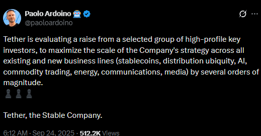 Chief Executive Officer Paolo Ardoino previously stated that the company was considering raising funds from a select group of investors to accelerate growth across both existing and new business lines. These areas include stablecoins, distribution networks, artificial intelligence, commodity trading, energy, communications, and media.