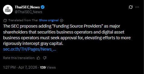 Thailand SEC Proposes Stricter Rules on Crypto Funders
