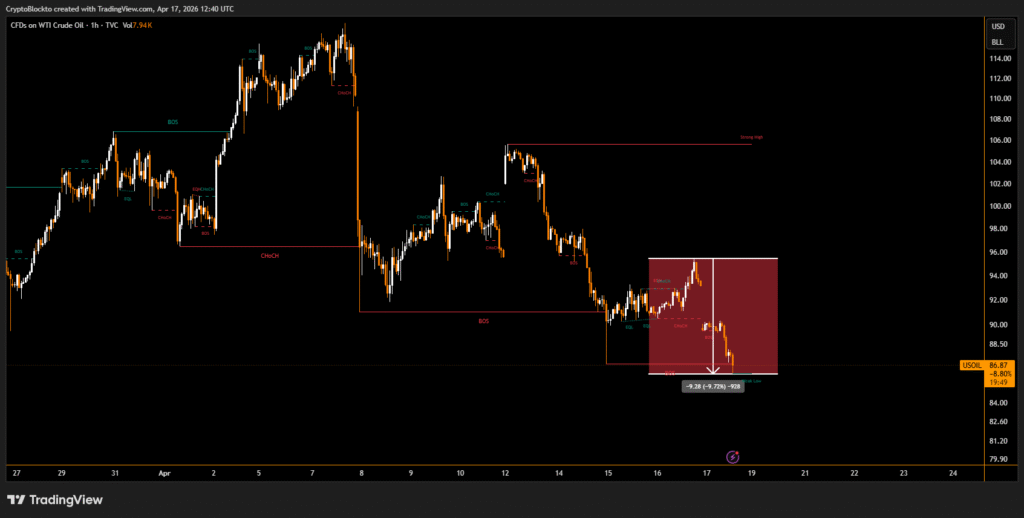 WTI crude oil h1 price chart