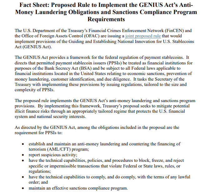 GENIUS Act Requires AML and Sanctions Compliance Programs